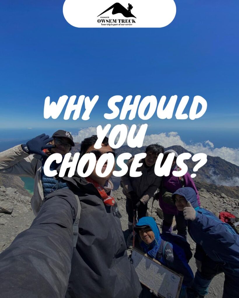 Owsemtreck brings trusted experience in organizing trekking adventures on Mount Rinjani, guided by a professional team dedicated to supporting you every step of the way. We prioritize excellent service with a strong commitment to safety while embracing an eco-friendly approach to preserve nature’s beauty. Each journey is designed to deliver an authentic and memorable experience, with flexible packages tailored to your needs. With Owsemtreck, you’ll enjoy a safe, seamless, and unforgettable adventure to the summit of Rinjani.